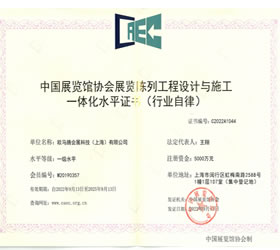 中國展覽館協會展覽工程企業一級資質證書